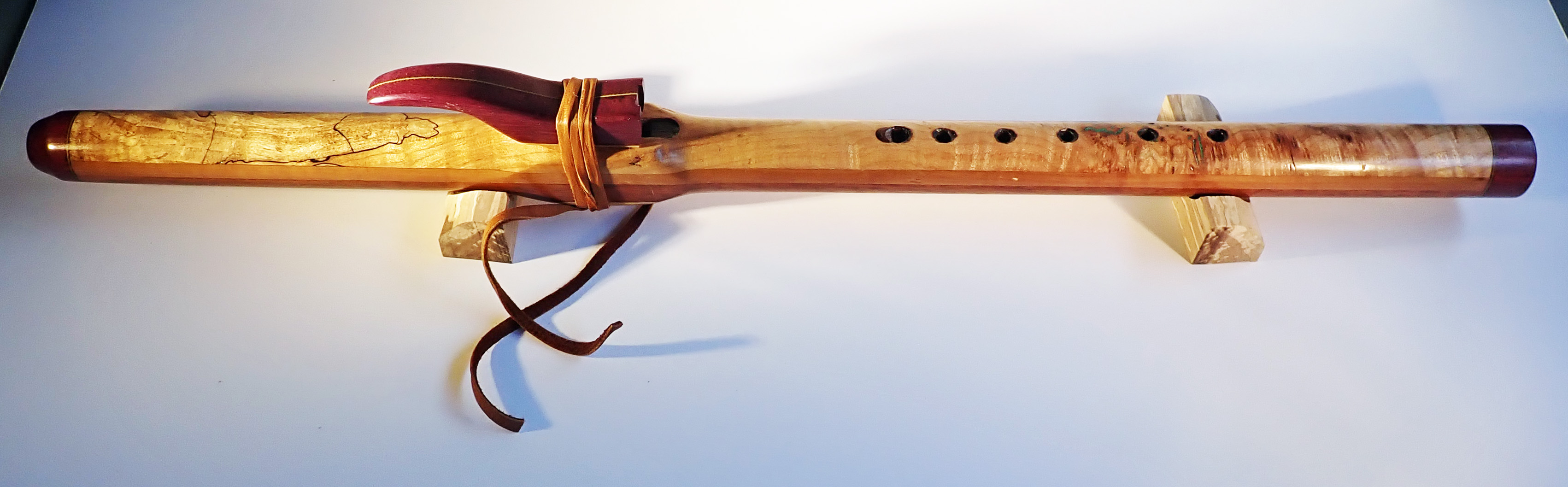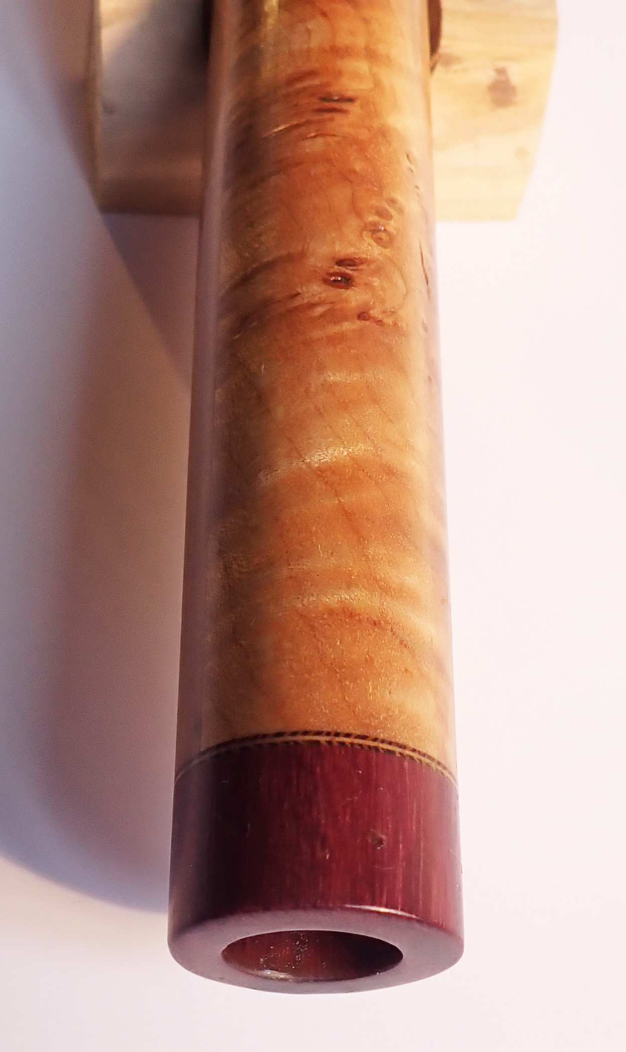 Made of: laminated wood with purpleheart bird and end caps.