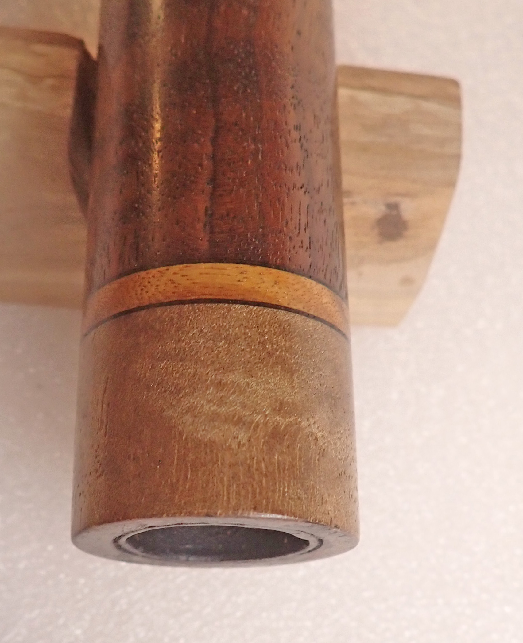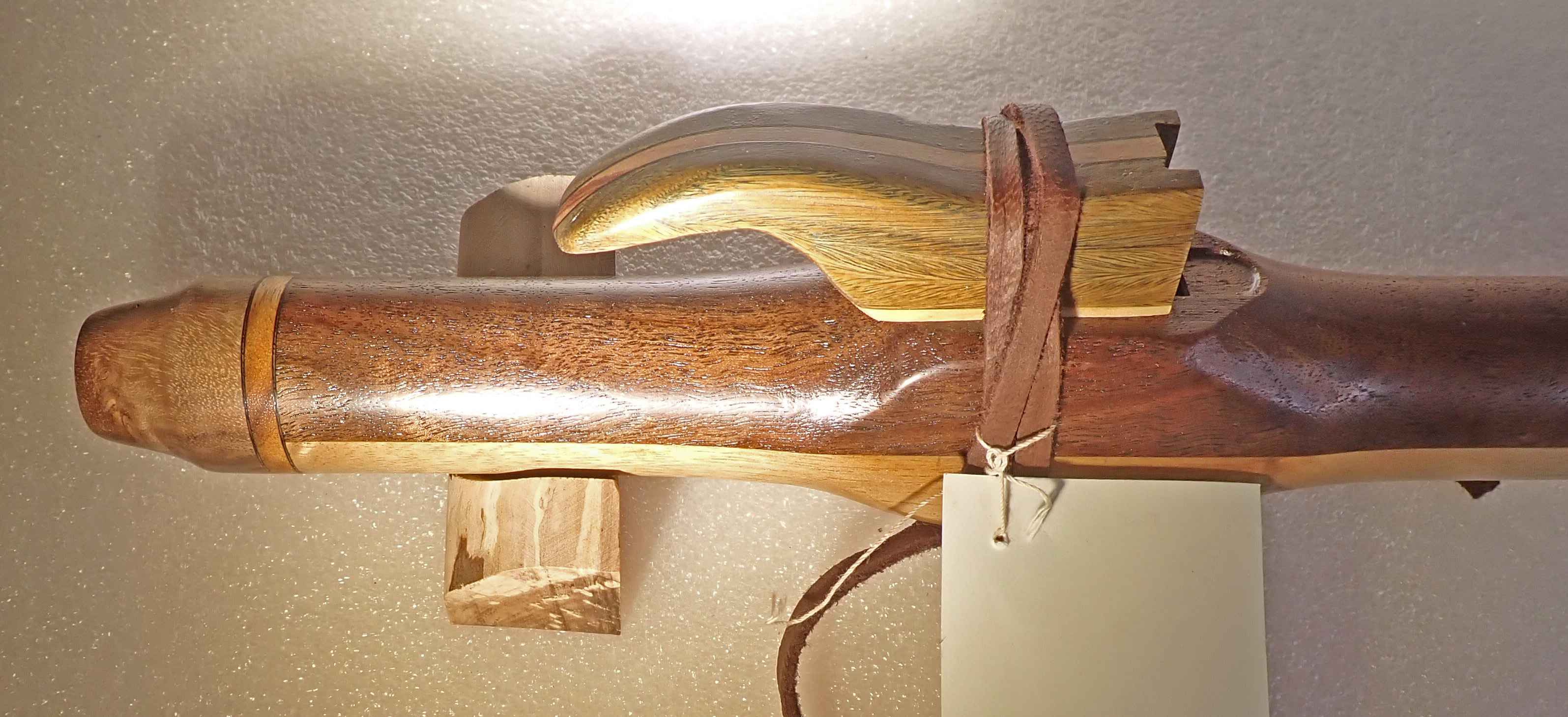Made of: walnut and limba with myrtle burl end caps and bird.