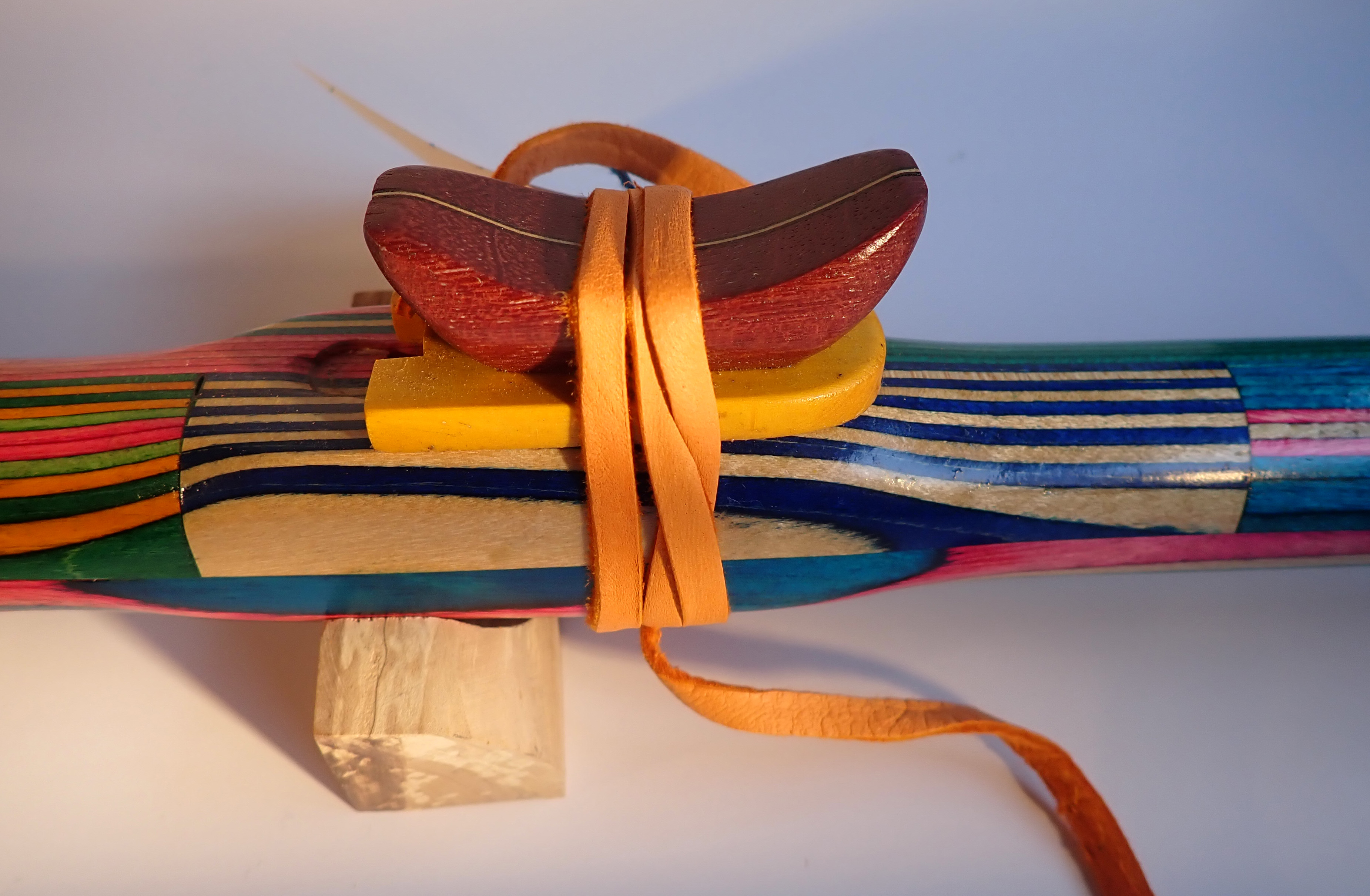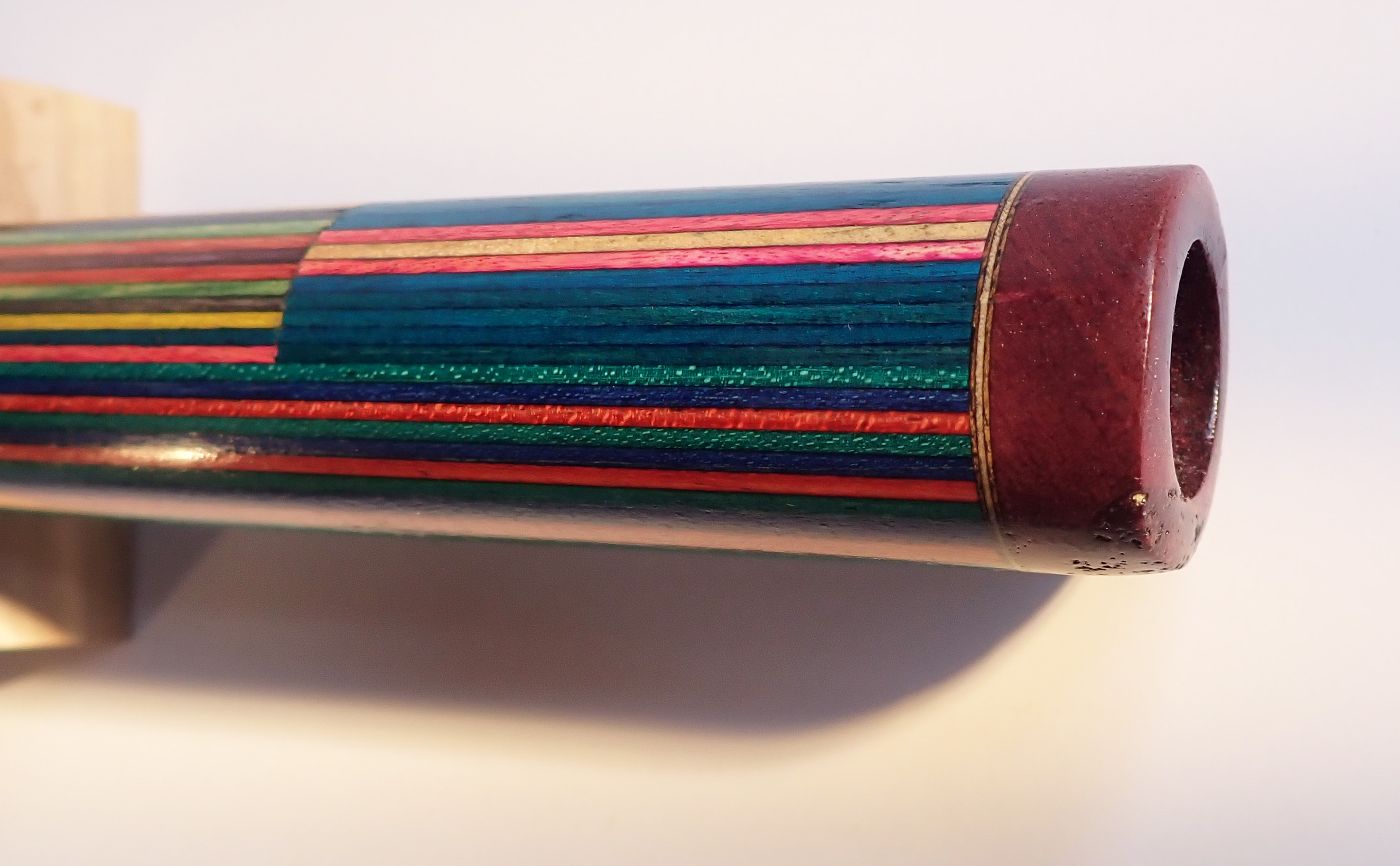 Made of: dyed birch laminate with purpleheart bird and end caps.