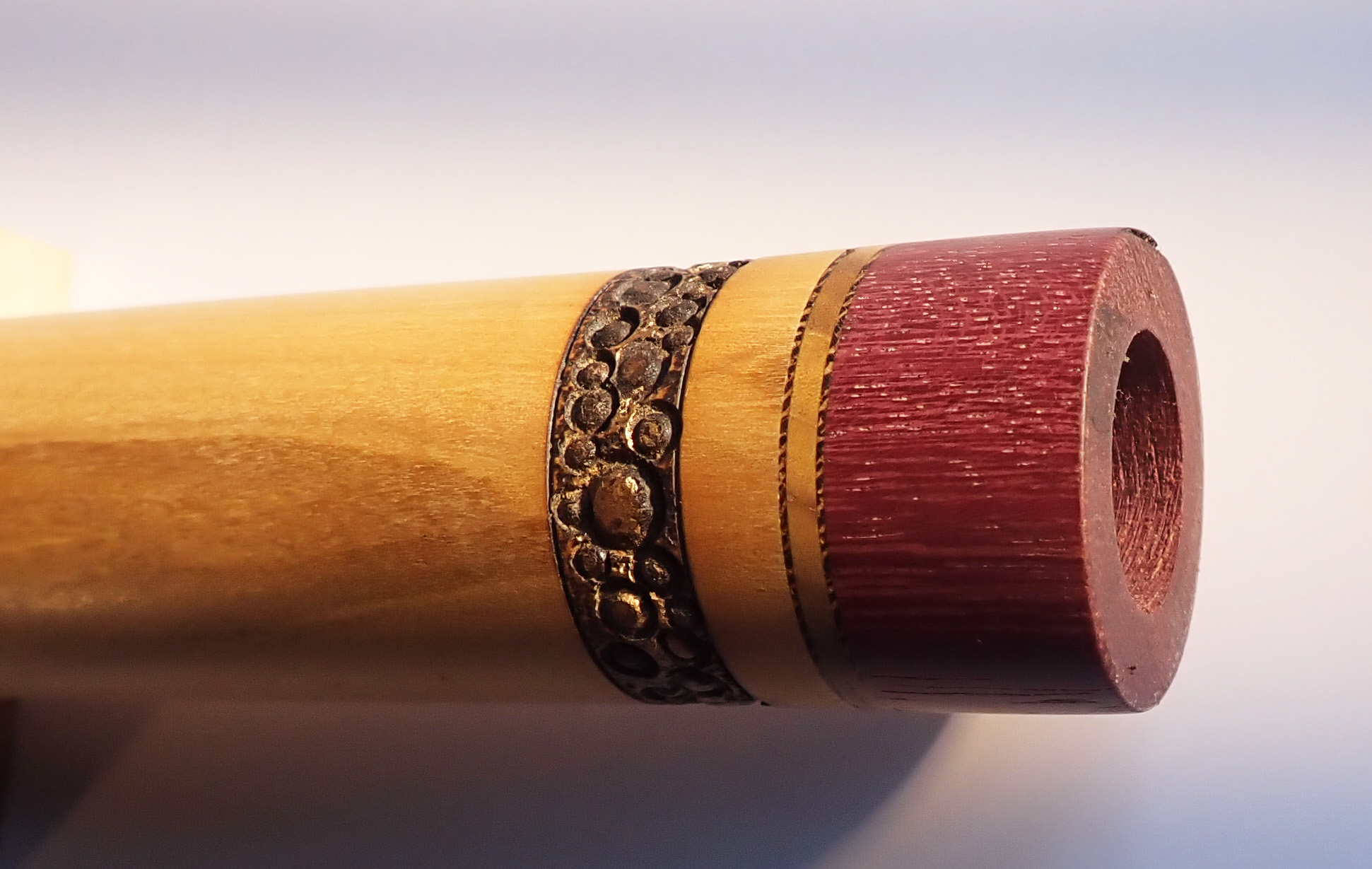 Made of: Castello boxwood with purpleheart bird and end caps.
