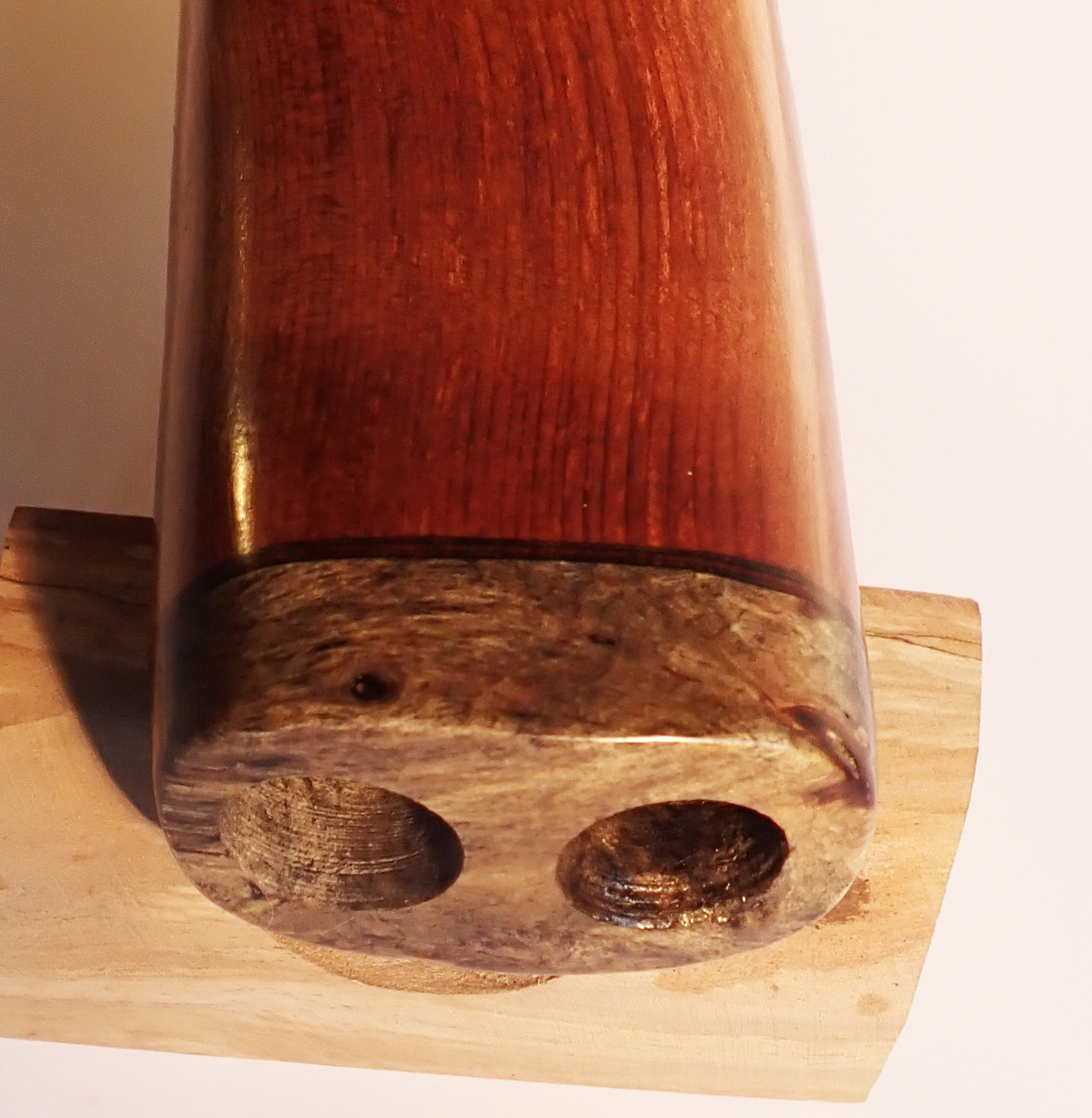 Made of: redwood with spalted buckeye burl end caps and bird.