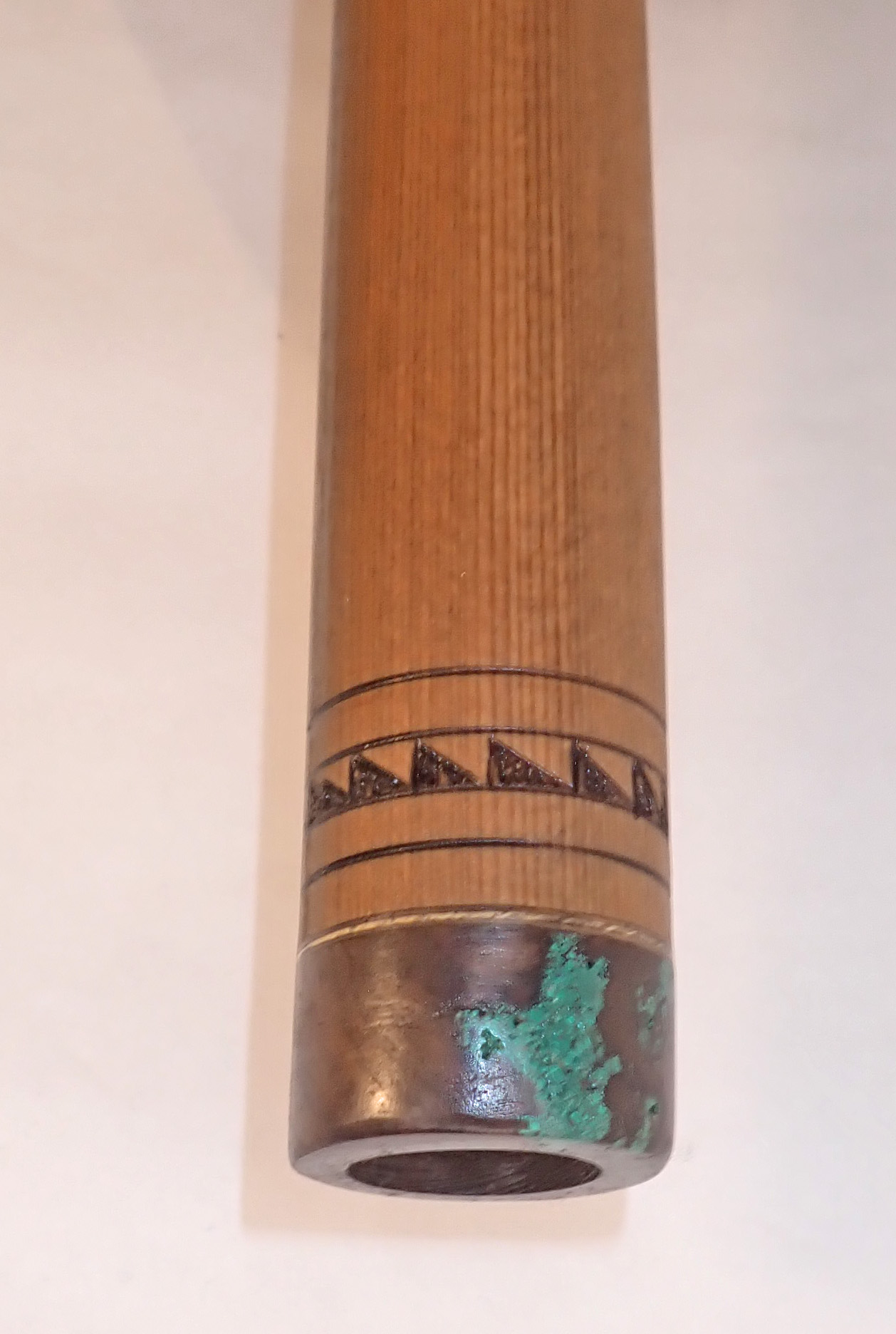 Rich voice in reclaimed deck wood with malachite inlay